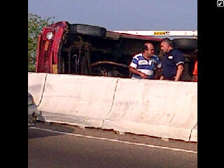 Hace pocos minutos se volcó una camioneta en el distribuidor Gumberto Fernández Morán después de desplazarse a gran velocidad.