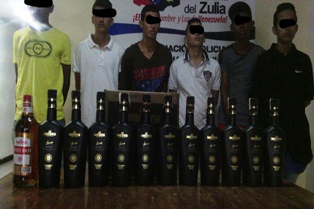 Seis sujetos, entre ellos tres menores de edad fueron capturados, en horas de la tarde de este miércoles, por efectivos del Cuerpo de Policía Bolivariana del estado Zulia, cuando tenían en su poder varias botellas de licor, presuntamente provenientes del saqueo de un camión cava.