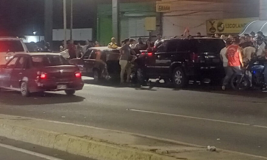 Tres vehículos colisionaron la noche de este domingo 24 de agosto en la Circunvalación 2, frente al Hospital Madre Rafols, parroquia Cacique Mara, Maracaibo, Zulia. El accidente dejó a una mujer y dos niños heridos.