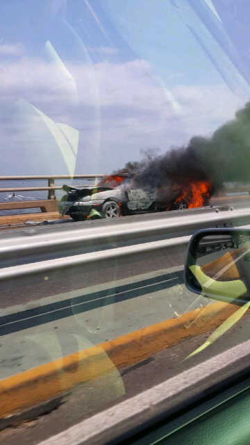 En horas de la mañana se registró un incendio en el Puente General Rafael Urdaneta, sobre el Lago de Maracaibo.