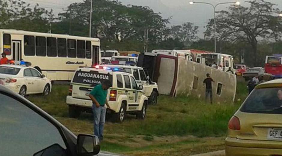 15 personas resultaron heridas tras el vuelco de un autobús en la autopista del Este de Carabobo, frente al Centro Comercial Sambil.