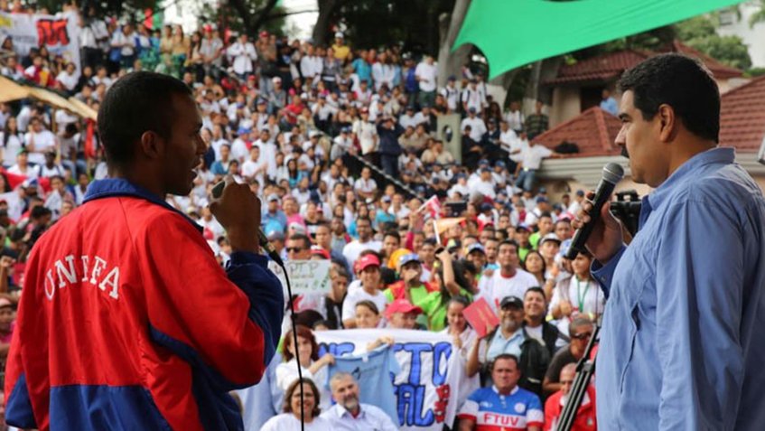 Desde el Palacio de Miraflores, el primer mandatario, exhortó este lunes a todas las universidades del país y a la Misión Sucre a apoyar la labor de los Consejos Productivos de Trabajadores, responsables de evitar un paro en Venezuela.