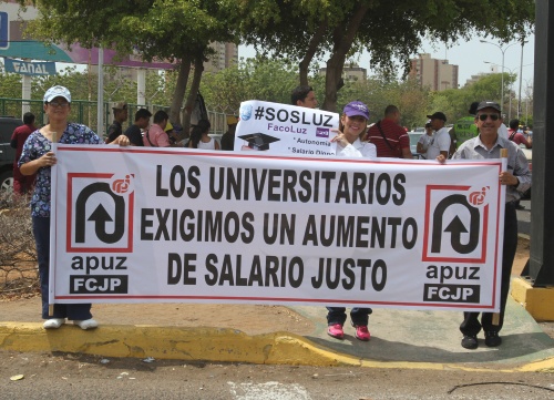 El gremio de docentes de la Universidad del Zulia, Apuz, salió a la calle, este miércoles a protestar por los bajos salarios que perciben y demostraron como vendiendo frutas “se gana muchos más que impartir clases”.